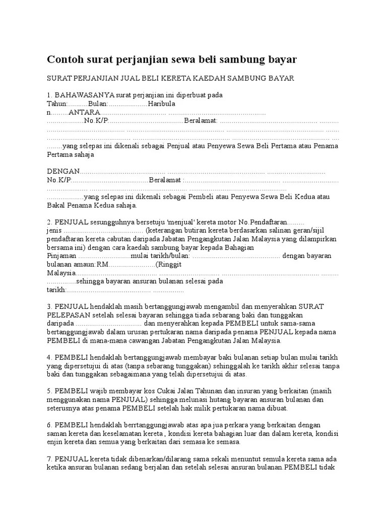 Perkhidmatan jual beli kereta baru dan terpakai, menguruskan sambung bayar kereta, menguruskan pinjaman kereta, jual kereta untuk spare part,menguruskan insuran pemotoran, memberi perkhidmatan berkaitan dengan jpj. Pada umumnya penggunaan surat perjanjian dapat kita temukan pada saat proses transaksi jual beli sepeda motor baik secara kredit ataupun tunai. Klausul yang diatur dalam surat perjanjian jual beli bersifat terbuka. Contoh surat sambung bayar kereta. Savesave contoh surat perjanjian jual beli kereta for later.
