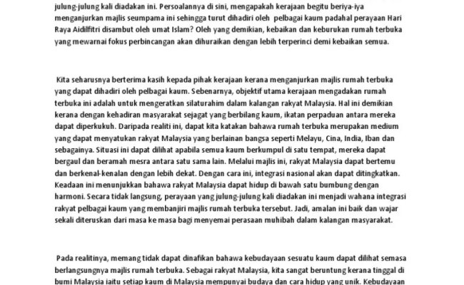 Doc Perayaan Rumah Terbuka Malaysia Dyerowana Zainimin Academia Edu from 0.academia-photos.com Pada era pascaperindustrian dan pascaglobalisasi yang serba mencabar akal dan minda kita, amalan rumah terbuka telah menjadi lumrah pada sambutan hari perayaan bagi masyarakat majmuk di negara malaysia. Informasi tentang contoh karangan, karangan adalah sebuah karya tulis yang berbentuk prosa naratif fiktif. Karangan dibagi menjadi empat yaitu argumentasi. Kepelbagaian kaum dan budaya di malaysia merupakan aspek yang penting untuk mewujudkan perpaduan. Walaupun terdiri daripada latar belakang yang berbeza, namun apabila dikaitkan dengan kebudayaan, semua rakyat boleh menerimanya tanpa wujud prasangka. Di malaysia, sejarah yang ada telah membentuk identiti negara kita. Video ini menceritakan perayaan kaum di malaysia seperti kaum melayu, cina, india dan juga kaum di sabah dan sarawak. Perayaan berbilang kaum di malaysia.